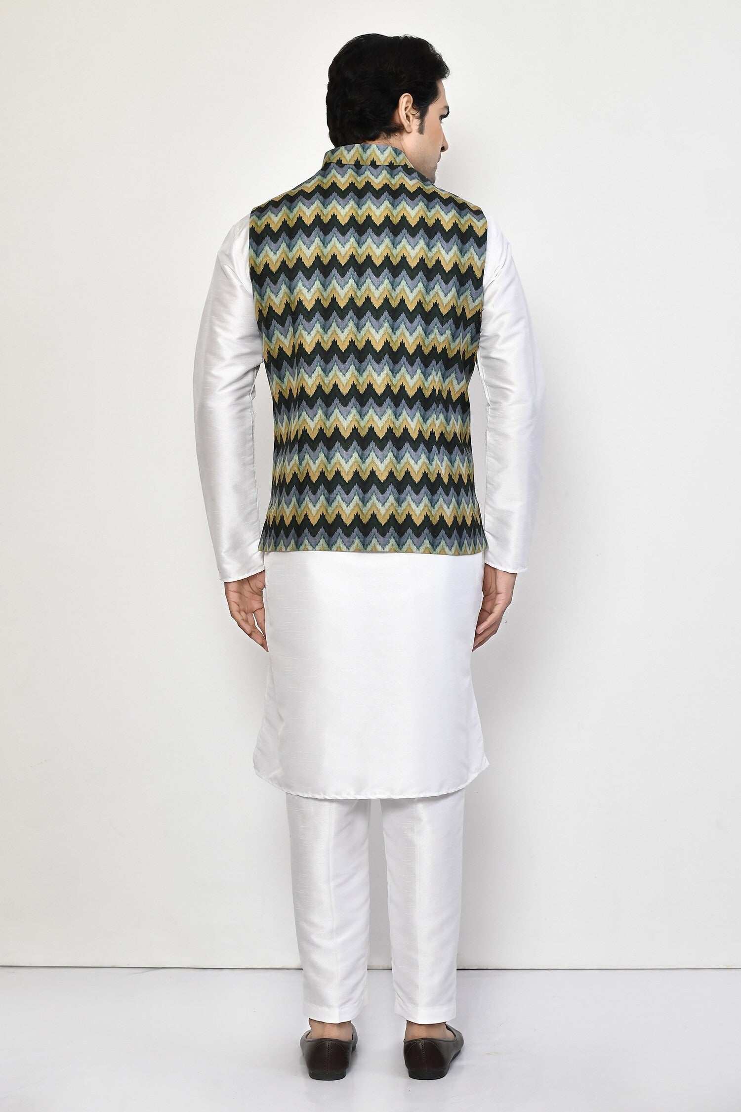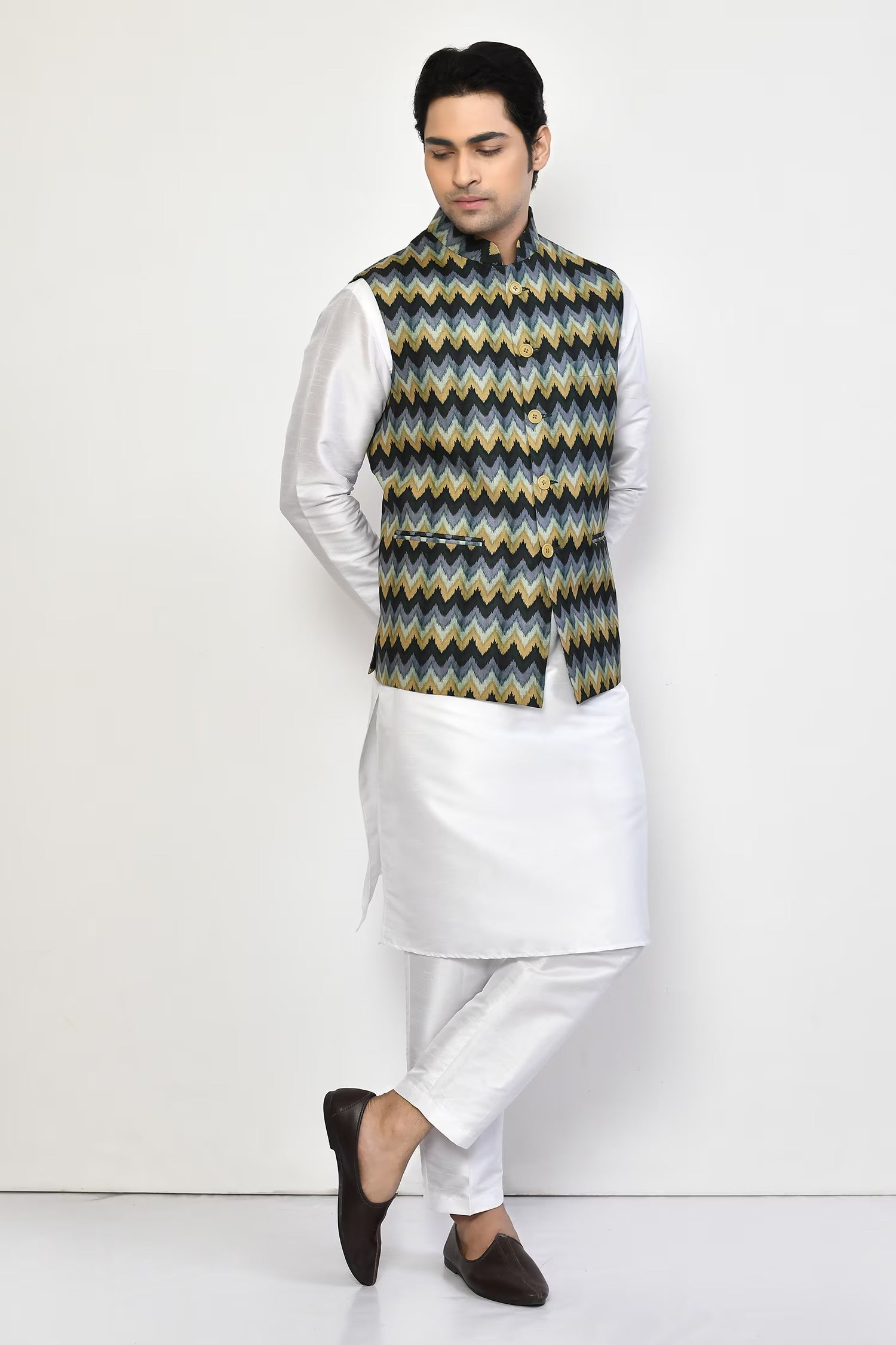 This multicolor designer jacket, crafted from a premium silk blend, showcases exceptional tailoring and a vibrant palette that enhances any wardrobe. The luxurious fabric offers a soft, breathable feel while maintaining structure and durability. Ideal for those who seek a sophisticated and unique style statement, this jacket balances elegance with contemporary flair.