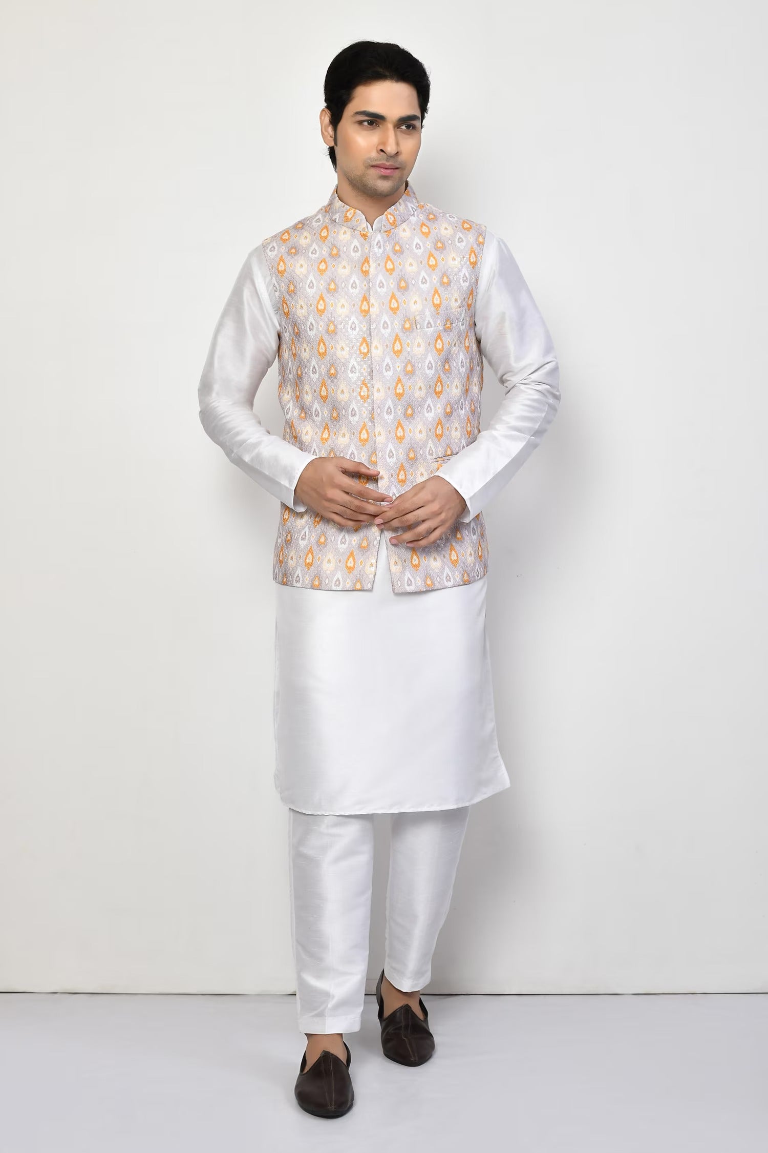 This multicolor designer jacket, crafted from a premium Cotton, showcases exceptional tailoring and a vibrant palette that enhances any wardrobe. The luxurious fabric offers a soft, breathable feel while maintaining structure and durability. Ideal for those who seek a sophisticated and unique style statement, this jacket balances elegance with contemporary flair.
