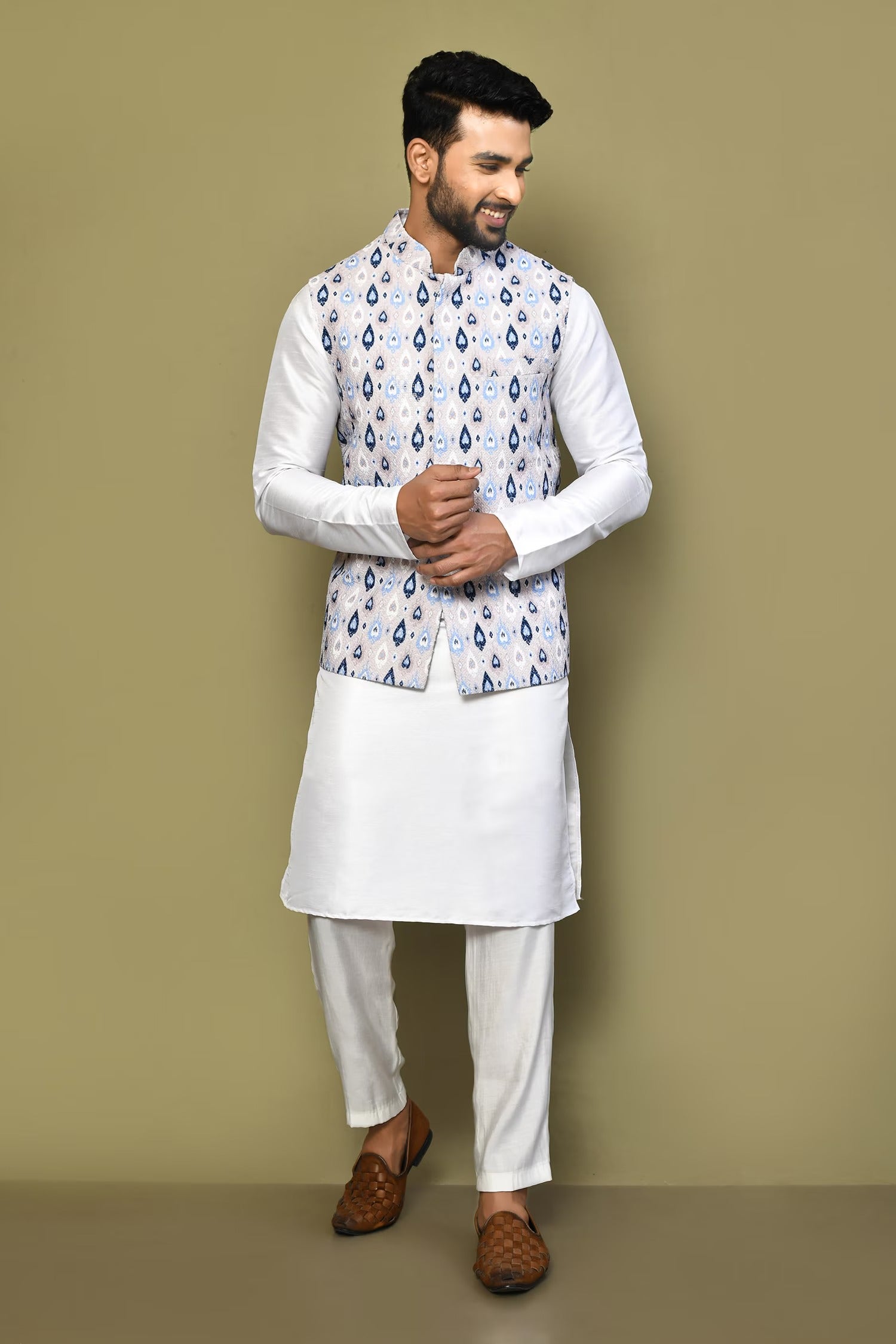 This designer jacket in white cotton is expertly crafted with exquisite sequin detailing, offering a subtle yet striking shimmer. The breathable cotton fabric ensures comfort without compromising elegance, making it perfect for sophisticated events. Its refined design and intricate embellishments create a timeless piece that enhances any wardrobe with a touch of luxury.