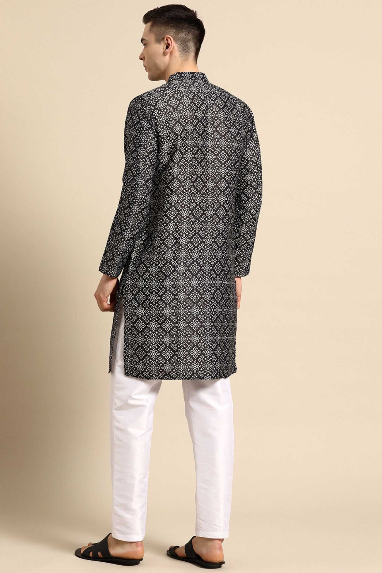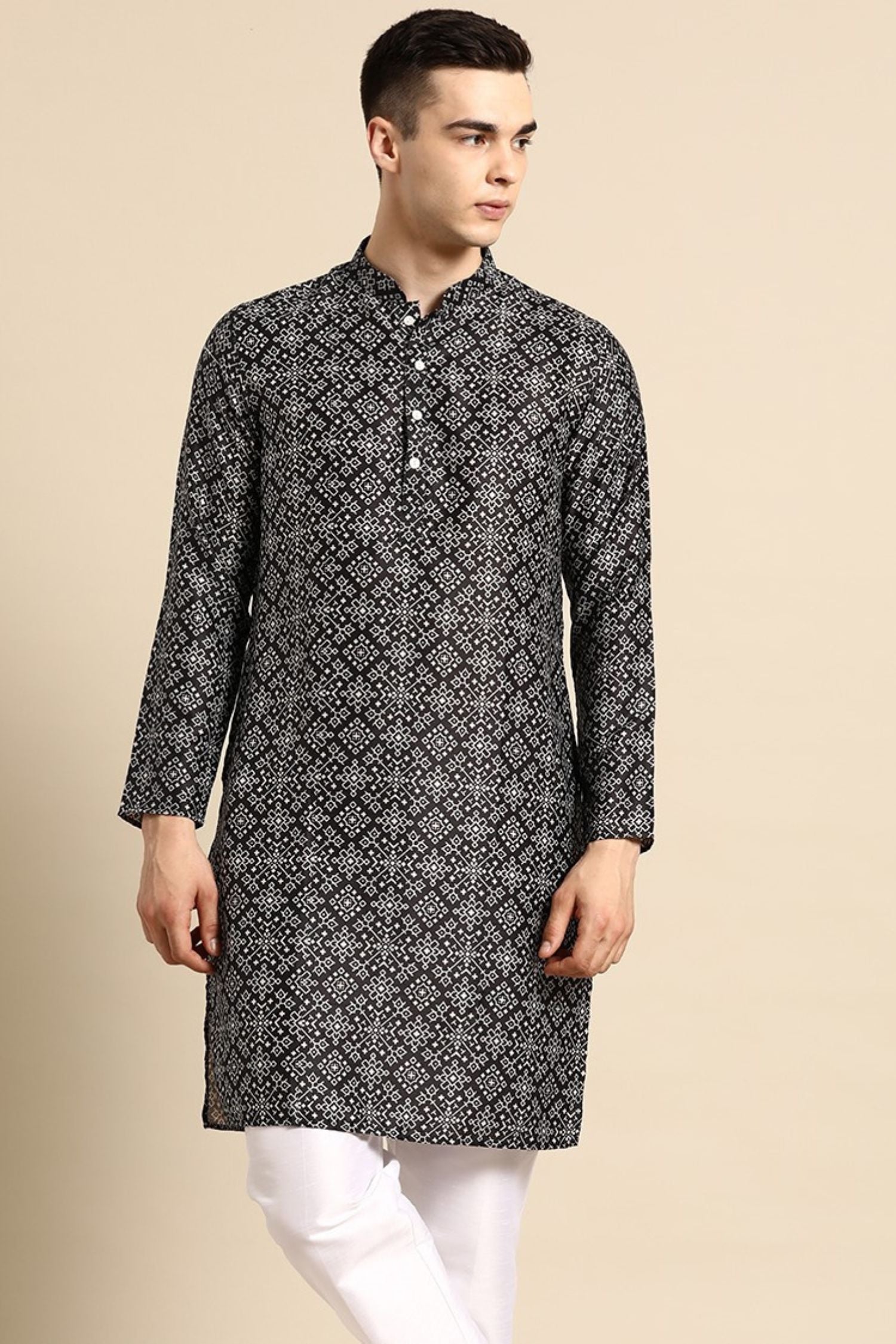 This designer long kurta in black silk combines traditional elegance with contemporary style. Its smooth silk fabric offers a rich texture and comfortable wear, perfect for festive occasions or formal gatherings. The tailored silhouette ensures a flattering fit, making it a sophisticated choice for those who appreciate fine craftsmanship and timeless fashion.