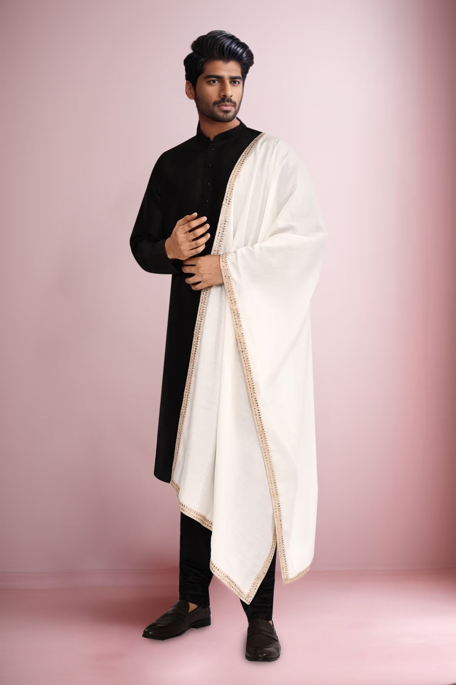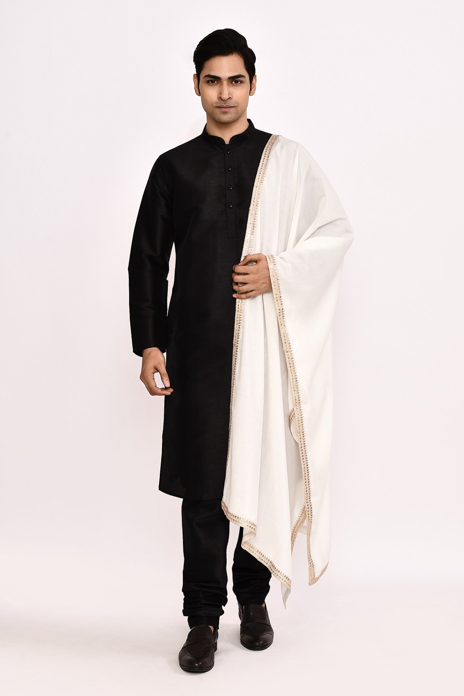This designer silk kurta set features a luxuriously crafted silk churidar paired with a breathable cotton dupatta. Expertly tailored from premium fabrics, it offers both sophisticated style and comfort, making it an excellent choice for formal occasions and traditional events.