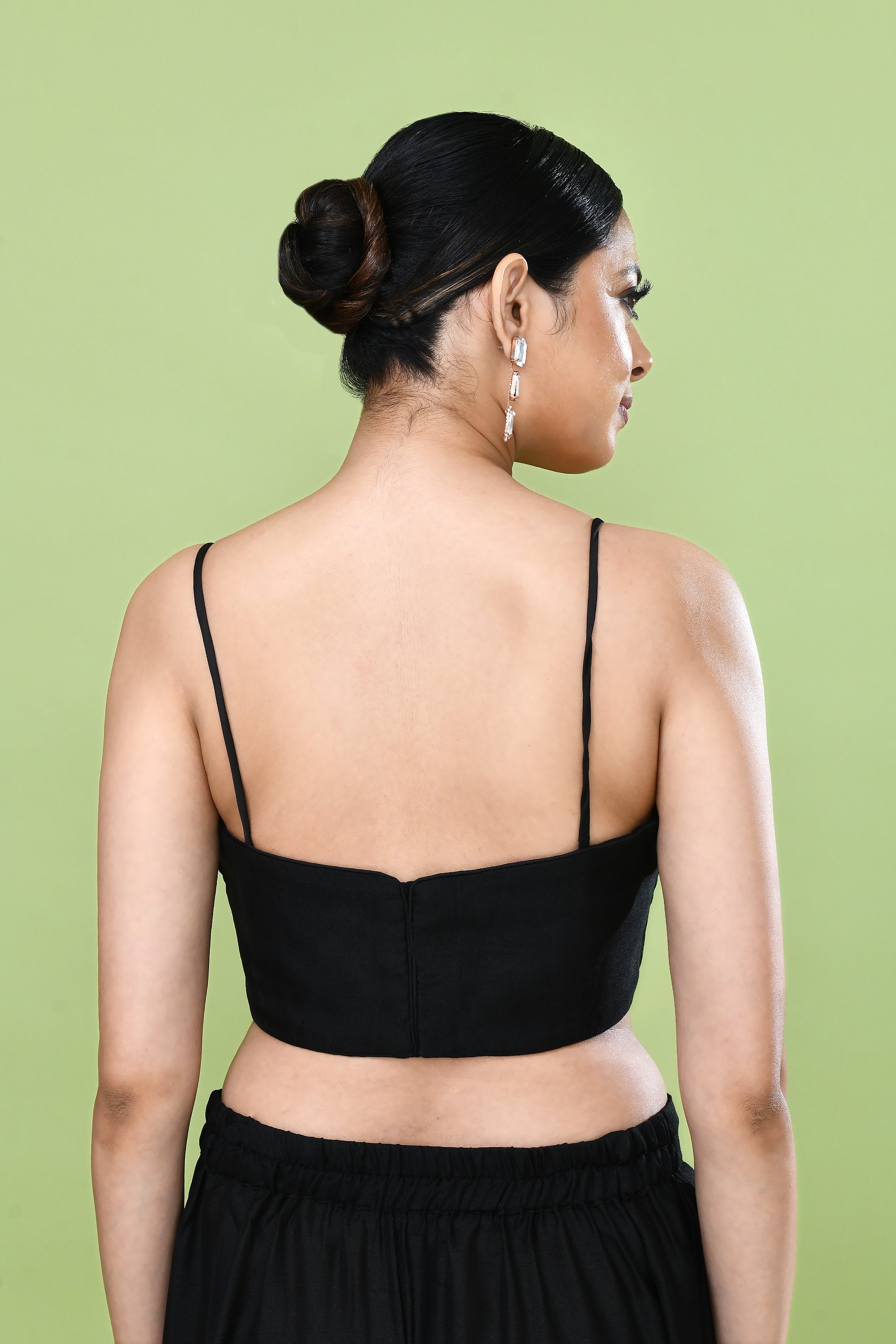 This Designer Wear Black Palazzo Set features a luxurious black silk crop top paired with elegant wide-leg pants, creating a sophisticated and comfortable silhouette. The ensemble is completed with a striking black and white center lace open jacket, adding texture and visual interest. Ideal for upscale events, this coordinated set combines premium materials with expert tailoring for a polished, contemporary look.