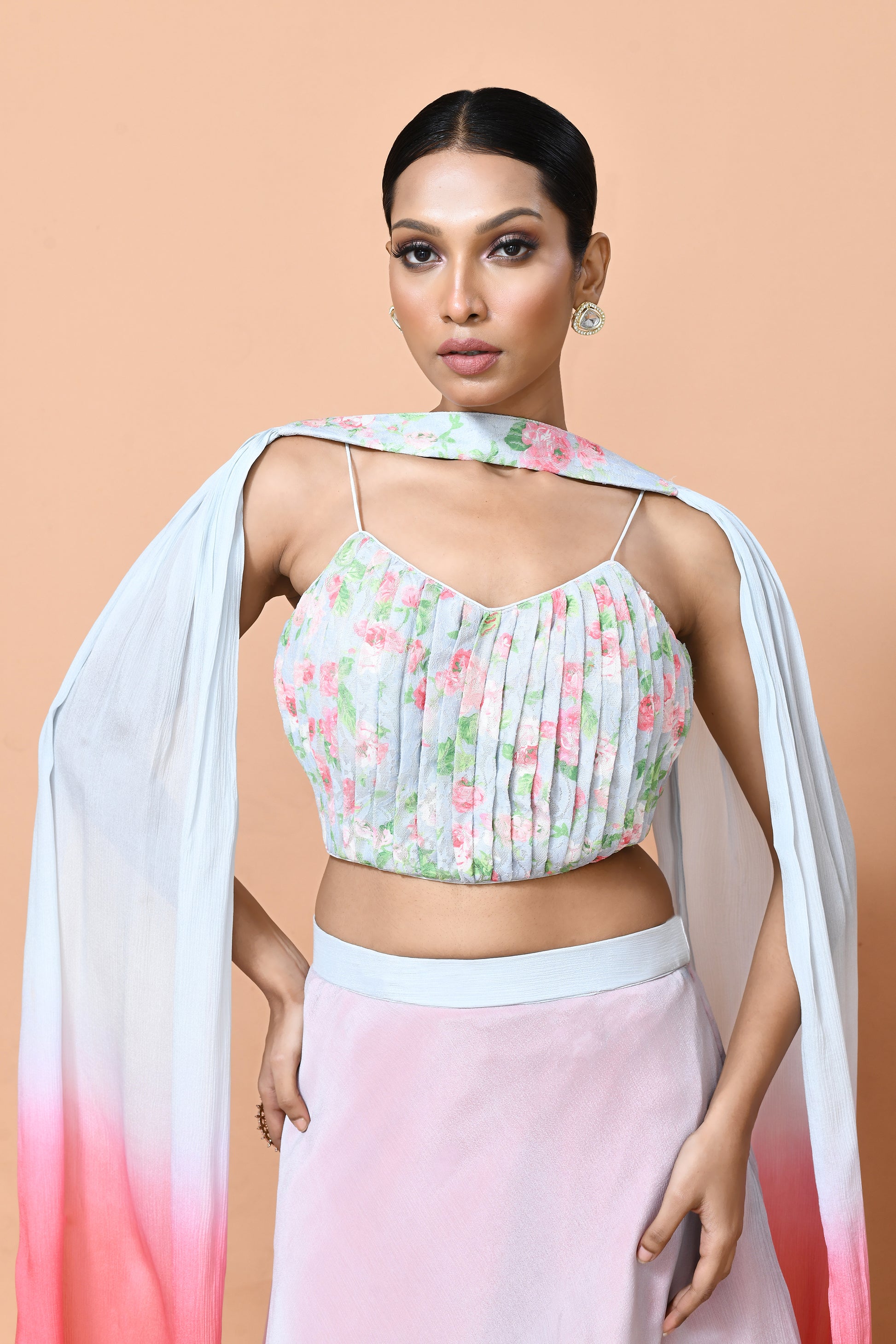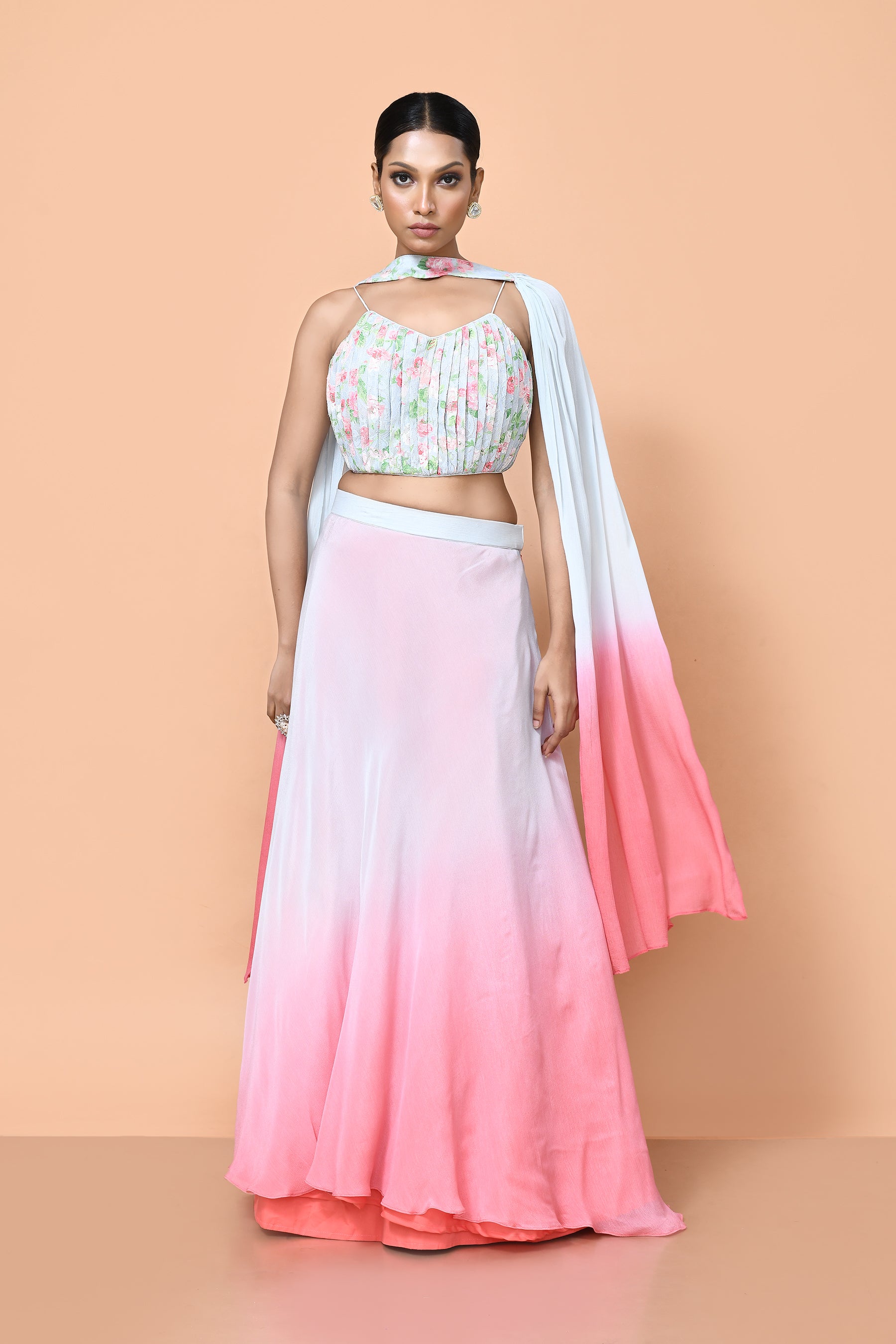 - FABRIC: Chinon Chiffon Lehenga & Centre Lace Top